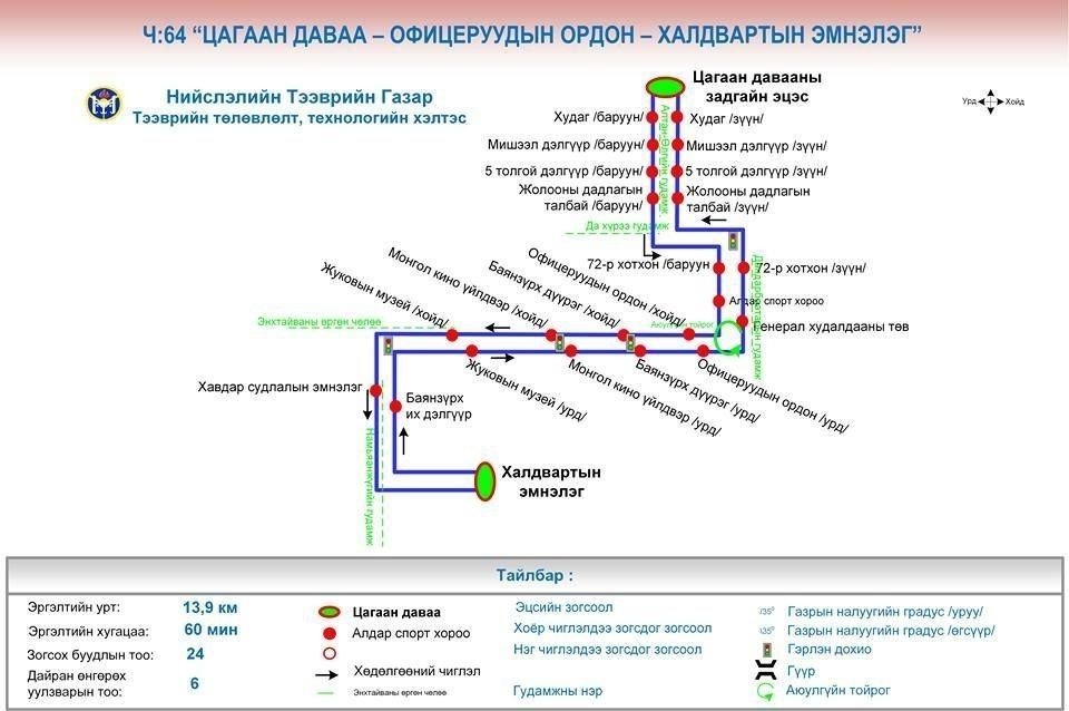 Мөн Ч:64 “Цагаан даваа-Офицеруудын ордон- Монгол кино үйлдвэр” чиглэлийн замналыг Халдвартын эмнэлэг хүртэл сунгажээ.