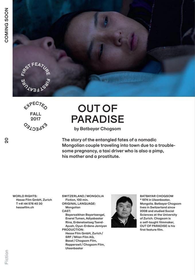 БНХАУ-ын Шанхайн олон улсын XXI кино наадмын дээд шагнал болох “Жиньжүе” шагнал гардуулах ёслолын ажиллагаа боллоо. Энэ наадамд Монгол, Швейцарийн хамтарсан “Out of paradise” кино шилдгийн шилдгээр шалгарч, “Best Feature Golden Goblet” шагнал хүртлээ.