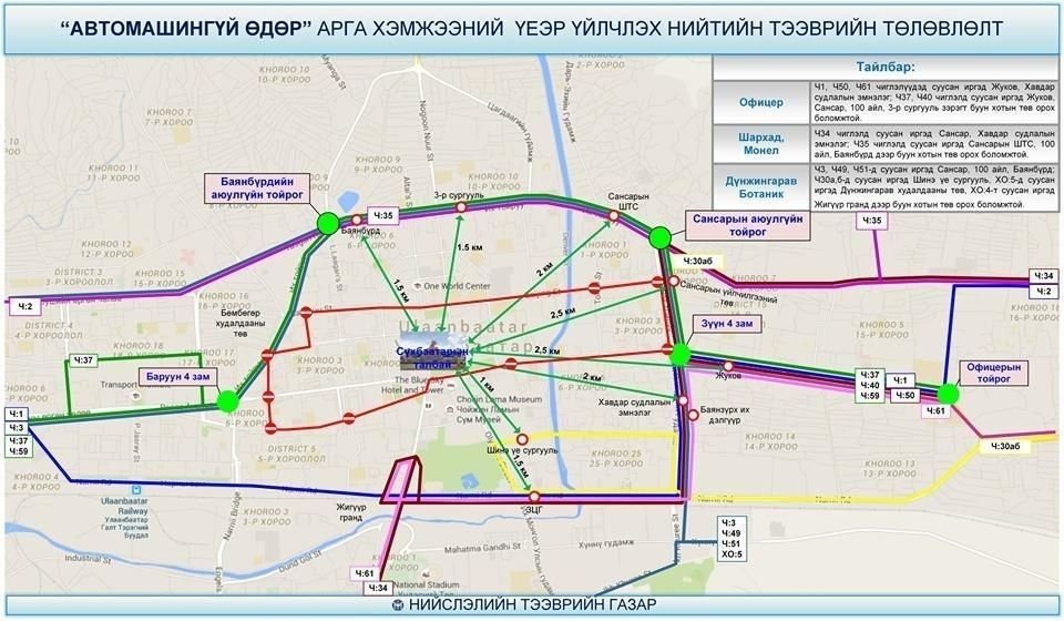 “Авто машингүй өдөр”-ийн үйл ажиллагаа дууссаны дараа буюу 17:00 цагаас хойш нийтийн тээврийн үйлчилгээ үндсэн замналын дагуу явна.