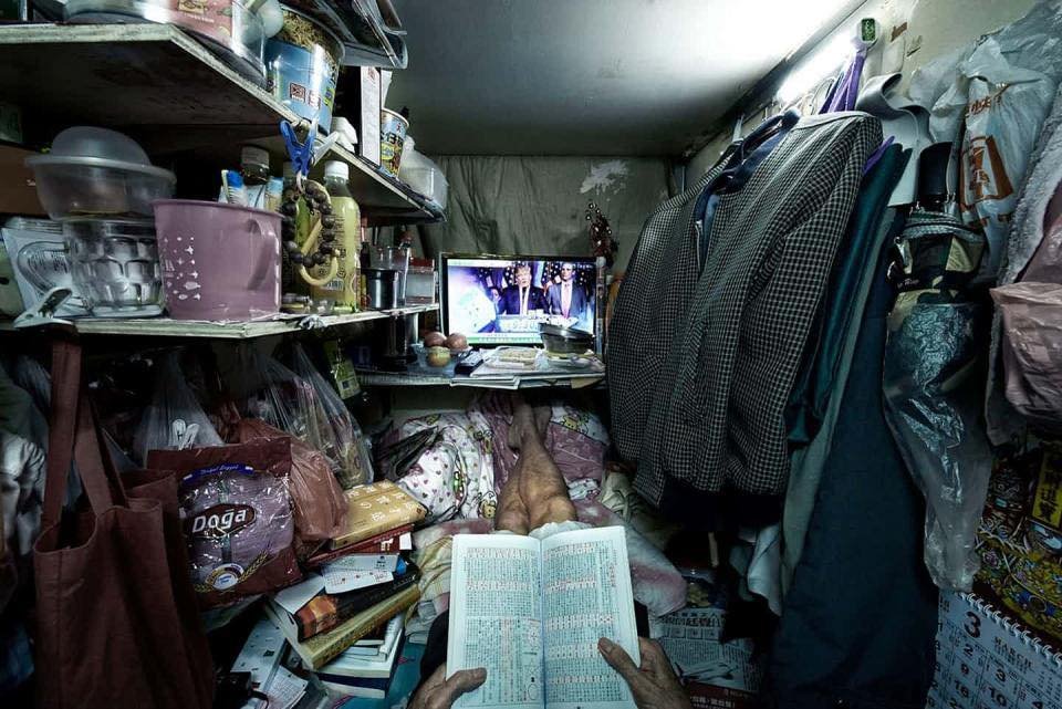 Доорхи зураг дээрхитэй адил хөлөө бүтэн нугалах боломжгүй оромжинд 200,000 орчим Хонг конг иргэд амьдардаг.