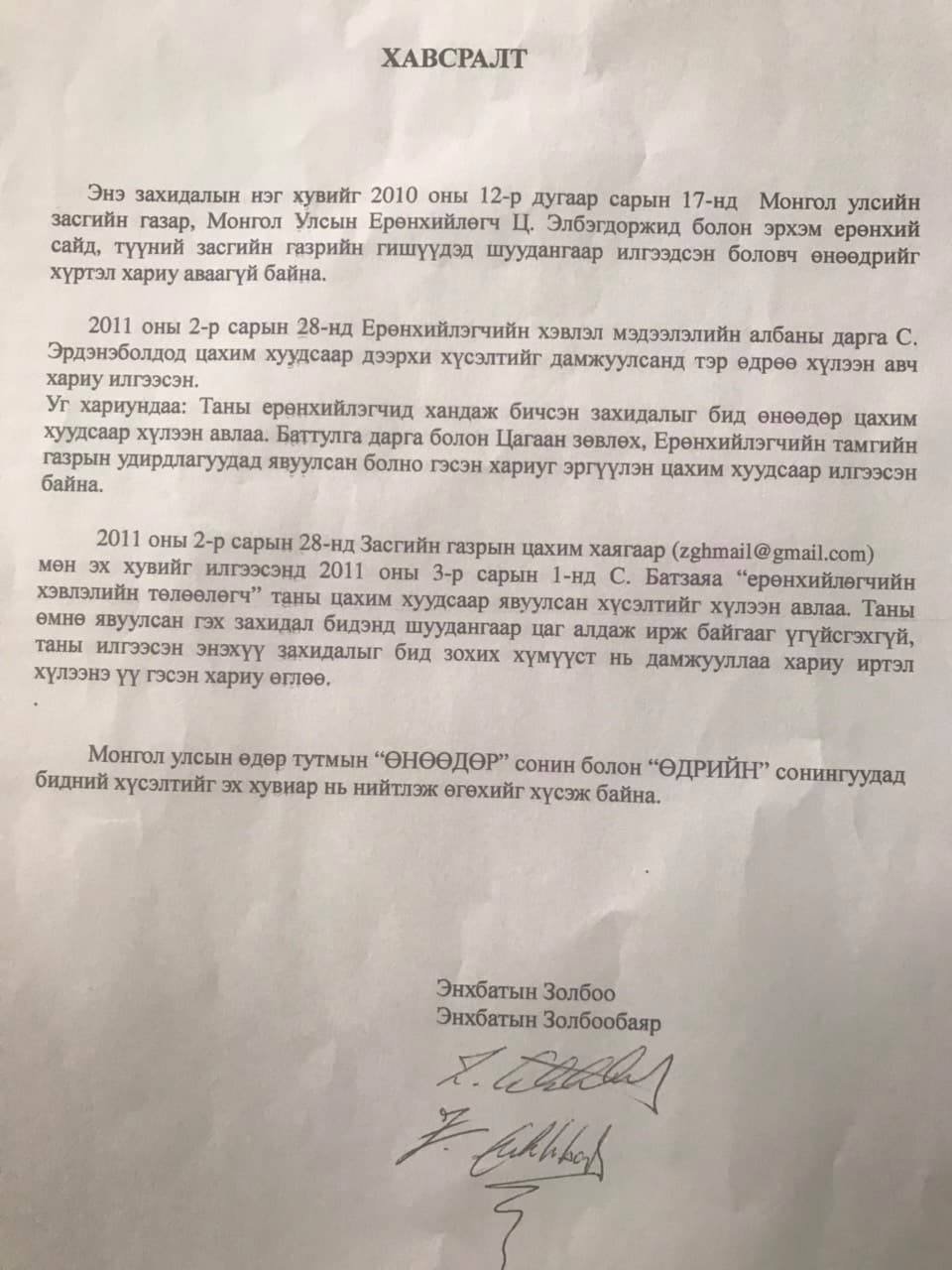 Тэд уг өргөдөлдөө, Бидний аав Д.Энхбатад хилс хэрэг тулган амь насыг хохироосон тул эл хэрэгт холбогдох хүмүүсийг тогтоож, аавын минь нэр төрийг сэргээж өгөхийг хүсчээ. Тухайн үед Д.Энхбат агсны үр хүүхдүүд нь хууль хяналтын байгууллагуудад шат дараалан өргөдөл гаргаж байсан удаатай. Гэвч тэдний өргөдлийн хариу огт өгдөггүй байжээ. Тиймээс талийгаачийн үр хүүхэд, ар гэрийнхэн, төрөл төрөгсөд нь олон улсын парламентын холбоонд өргөдөл гаргахаар болсон байна.