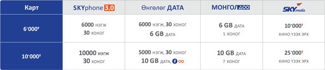 СКАЙТЕЛ, АПУ, ИМАРТ, ШУНХЛАЙ-н хамтарсан бэлэгтэй карт худалдаанд гарлаа. 6’000₮,10’000₮-ийн карт бүр бэлэгтэй бөгөөд үйлчилгээний төрлөөсөө хамааран дараах урамшууллыг давхар авах боломжтой.