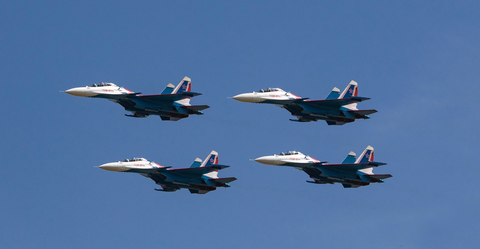 Су-30СМ нь Сухойн нэрэмжит зохион бүтээх товчооноос агаарт ноёлох зорилгоор бүтээсэн олон төрлийн зориулалттай, дөрөвдүгээр үеийн амдан сөнөөгч онгоц аж. Энэхүү тийрэлтэт онгоц нь яндангийн хэлбэрээ өөрчилдөг тул огцом эргэлт, өндөр хурдаас зогсолт хийх, эгц доош газар руу довтлох зэрэг уран бөгөөд амаргүй хүнд жолоодлогуудыг хийхэд дөхөм байдаг юм байна. Хойд хөршийн армийн уран нислэгийн үзүүлбэрийг үзэж сонирхохоор Хүйн долоон худагт маш олон иргэд цугласан байсан бөгөөд ОХУ-ын нисэгчид өндөр ур чадвар, техник шаардсан хүнд үзүүлбэрүүдийг амжилттай гүйцэтгэсний дотор “үхлийн гогцоо” хэмээх бүтэн тойргоор эргэлдэх үзүүлбэрийг хийсэн нь хамгийн хүнд үзүүлбэр гэдгийг мэргэжилтнүүд онцолж байлаа.