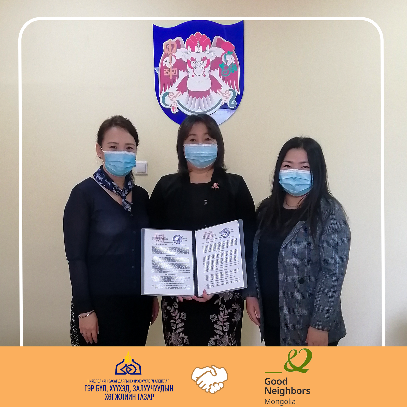 Нийслэлийн Гэр бүл, хүүхэд, залуучуудын хөгжлийн газар нь “Гүүд нэйборс” Олон улсын төрийн бус байгууллагатай хамтран “Гүүдэмповер” Грант төслийг хамтран хэрэгжүүлэхээр 2021 оны 03-р сарын 26-ны өдөр ХАМТРАН АЖИЛЛАХ ГЭРЭЭГ 2021 онд хэрэгжүүлэхээр байгууллаа.