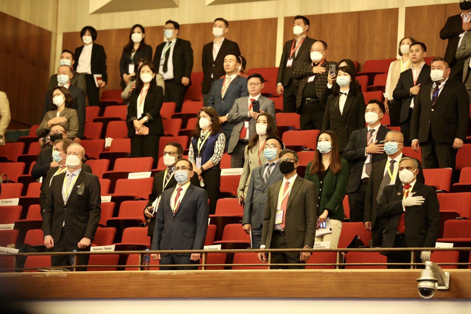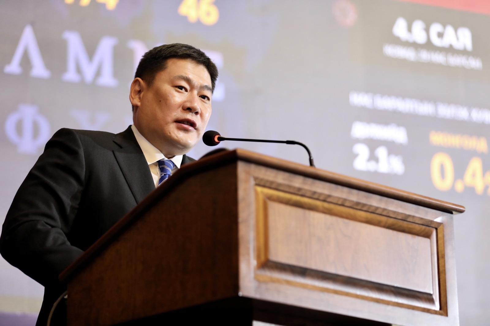 Зөвлөлдөх уулзалтад Монгол Улсын Ерөнхий сайд Л.Оюун-Эрдэнэ “Цар тахлын үеийн эдийн засгийг эрчимжүүлэх шинэ сэргэлтийн бодлого”-ын талаар илтгэл танилцуулж байна.
