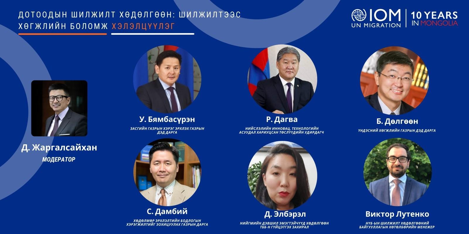 Тэгвэл НҮБ-ын Шилжилт хөдөлгөөний байгууллага “Улаанбаатар хотын шилжилт хөдөлгөөний хязгаарлалтын үр нөлөө болон шилжин суурьшигчдын эмзэг байдлын судалгаа” болон “Монгол улс: Шилжилт хөдөлгөөн ба хөдөлмөр эрхлэлт” сэдэвт судалгааг 2020-2021 онд гүйцэтгэн, судалгааны голлох үр дүнг олон нийт болон бодлого гаргагчдад танилцуулж, бодлогын хэлэлцүүлэг зохион байгуулллаа.