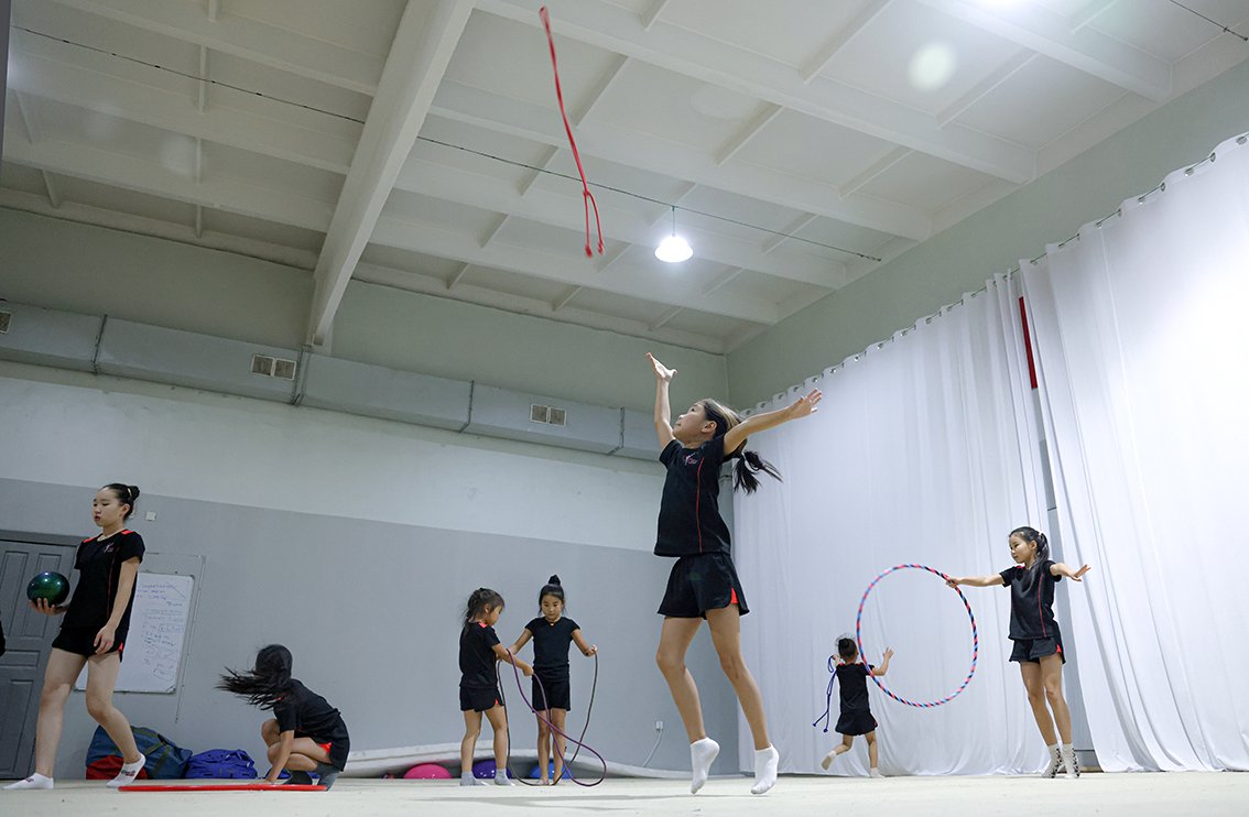 Тамирчид хүч чадал гаргаад зогсохгүй, тэсвэр тэвчээр тэнцвэртэй байдал, хөгжмийн сонсгол жүжиглэлт зэргийг шаарддаг. Тууз, бөмбөг, цагариг зэргийг ашиглан хийх дасгалууд нь үзүүштэй бөгөөд тамирчдаас анхаарал төвлөрүүлэлтийг маш ихээр шаарддаг. Түүнчлэн тамирчдаас бэртэхгүй байх талууд дээр үргэлж анхаарал хандуулахыг, өөртөө байнгын хяналт, хязгаарлалт тавихыг болон олон цагийн уйгагүй бэлтгэл шаарддаг хатуу спортын төрөл юм.